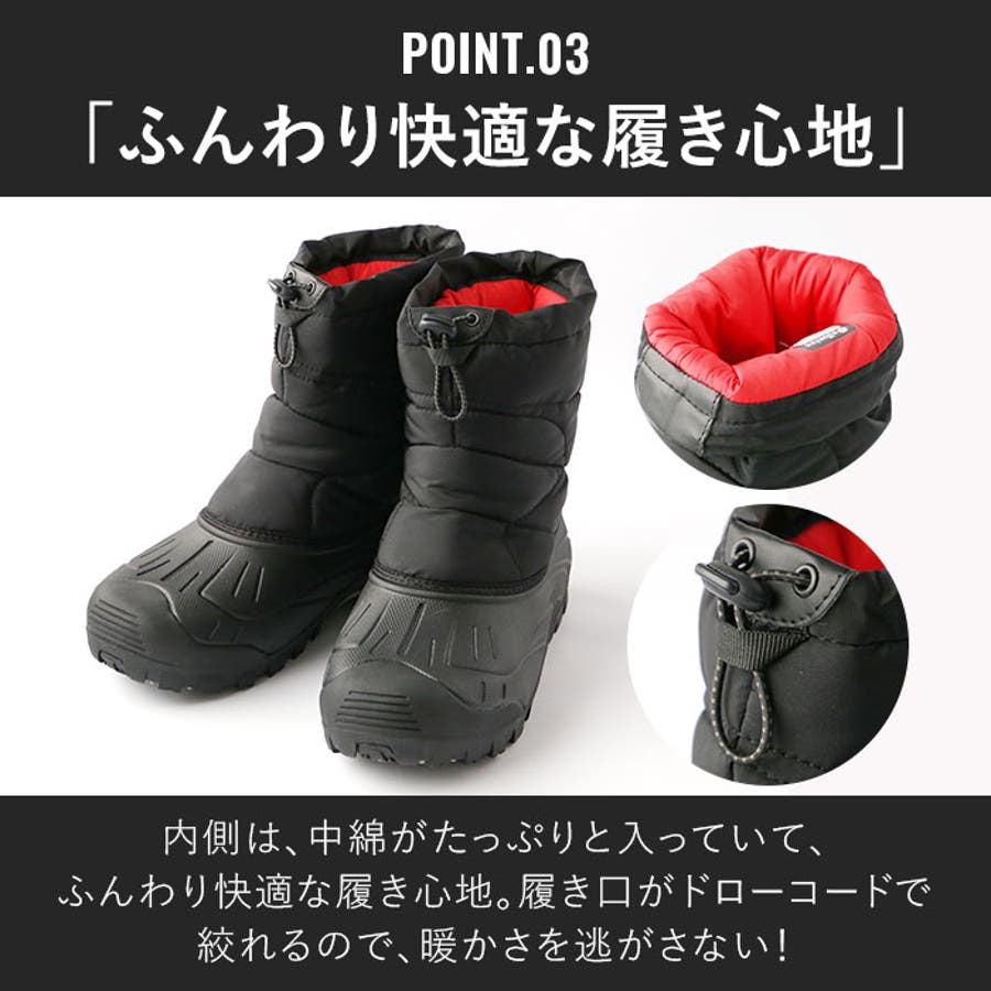 ・内側は、中綿がたっぷりと入っていて、ふんわり快適な履き心地。履き口がドローコードで絞れるので、温かさを逃がさない!