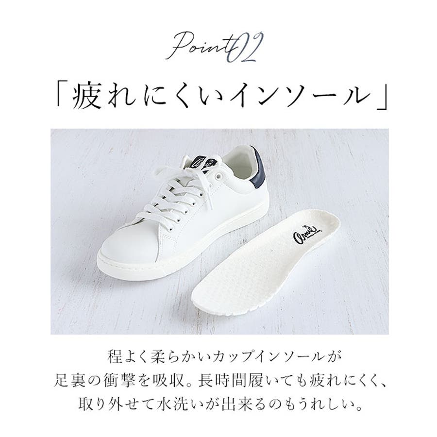 ・クッション性に富んだカップインソールが足裏にかかる衝撃を吸収。長時間歩いても疲れにくく、快適な歩行スタイルをサポート。