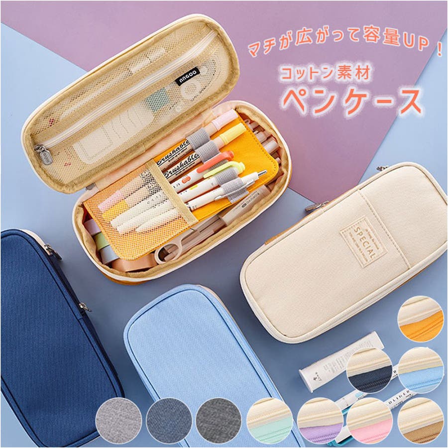 ・文房具が増えたら、マチが広がって容量UP!ふんわりコットン素材のペンケース♪