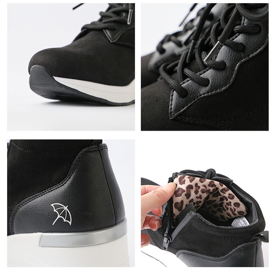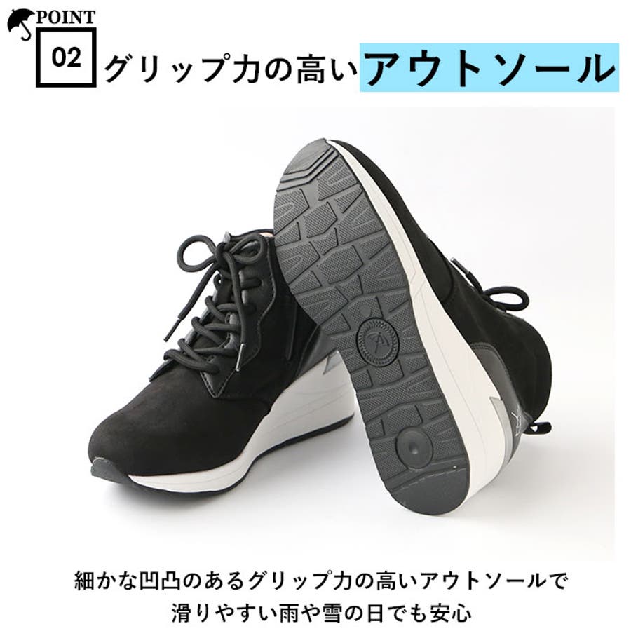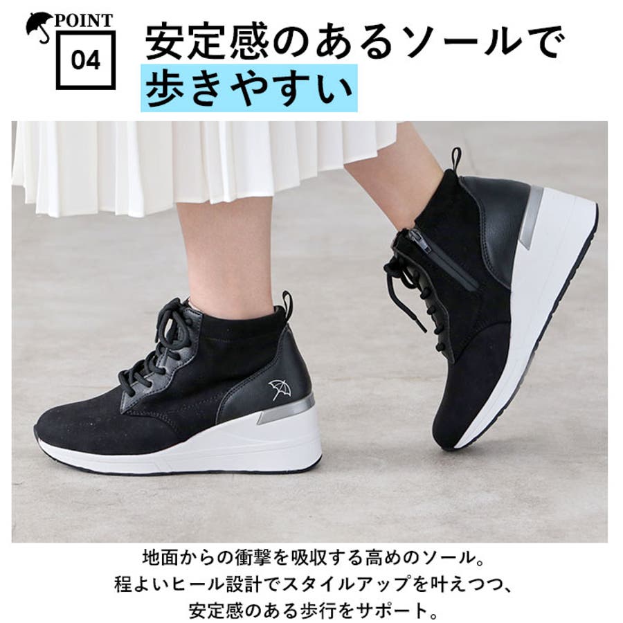 ・アッパー部分にスウェード調素材を使い、落ち着きのある印象に。サイドにキュートな傘マーク付きで、雨の日もおしゃれを楽しみたい女子におすすめ♪