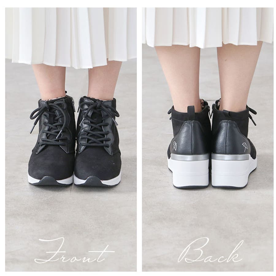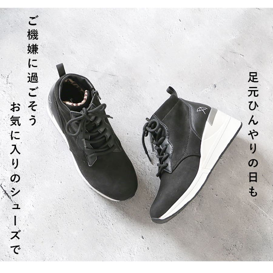 ・シューレースタイプのショートブーツ。ハイカットスニーカーのようなスポーティーなデザインで、晴れの日に履いても違和感なし◎天気が不安定な日や、旅行にも!