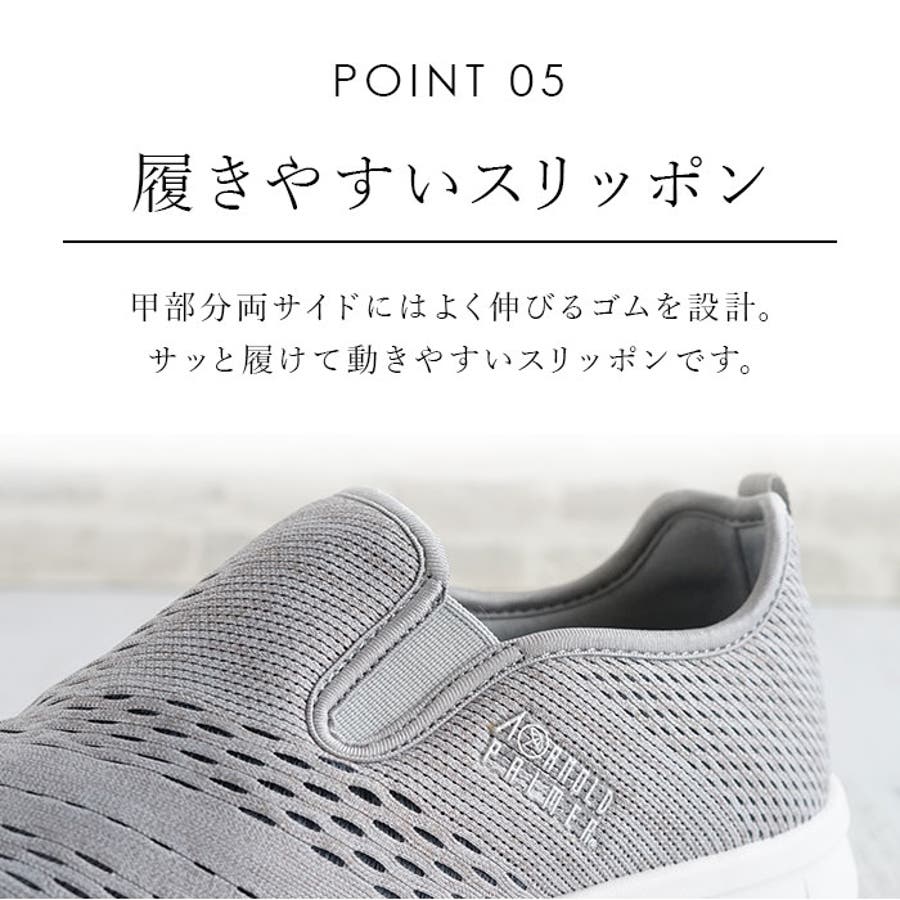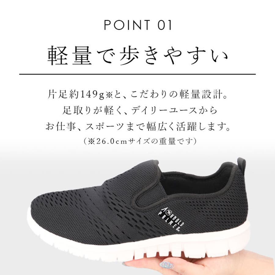 ・通気性に優れたメッシュ素材で片足約149g(※26.0cmの重量)と軽量♪さらに低反発クッションインソールが衝撃を吸収してくれるので、足が疲れにくい◎