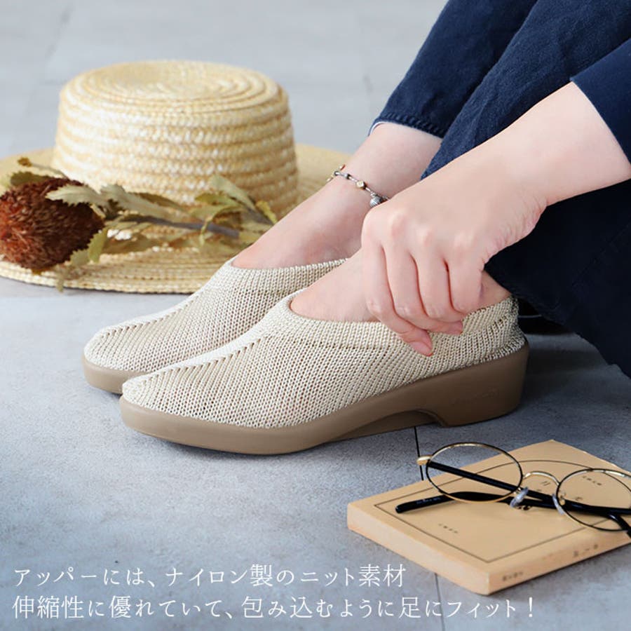 ・アッパー部分には、ナイロン製のニット素材を採用。伸縮性に優れているので、包み込むように足にフィット!蒸れにくさも嬉しいポイント。