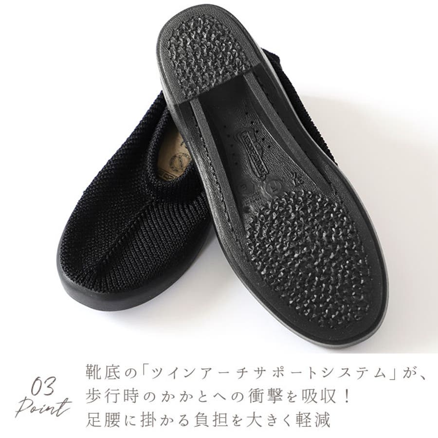 ・さらに靴底に縦に2本入ったライン「ツインアーチサポートシステム」が、歩行時の踵への衝撃を吸収!足腰に掛かる負担を大きく軽減。