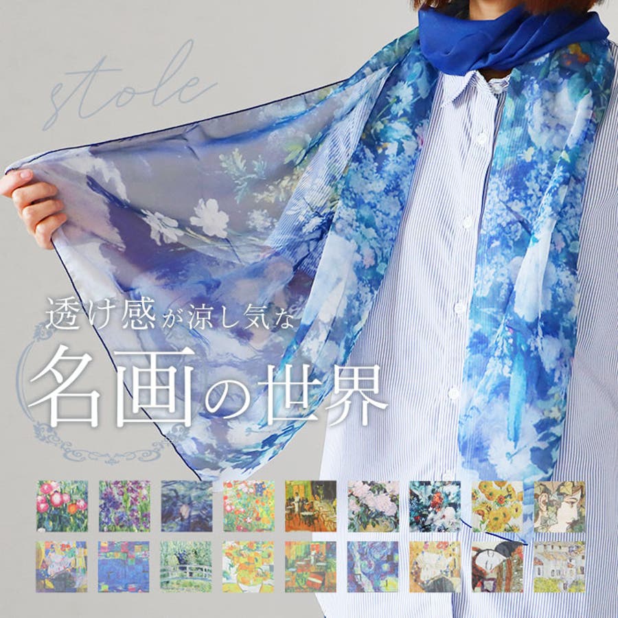 【キーワード】名画ストール スカーフ 名画スカーフ おしゃれ 冷房対策 ショール 優雅 上品 軽量 軽い エアコン対策 肩掛け オールシーズン 春 夏 秋 冬 レディースファッション 防寒 薄手 母の日 贈り物 ギフト