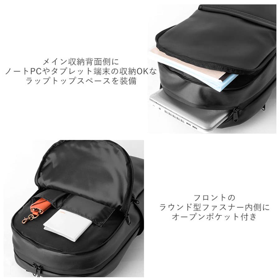 ・フロント、メイン収納開口部には、止水ファスナーを採用し、シンプル&スタイリッシュな外観と機能性を両立。タウンユースはもちろんアウトドアにも使える♪