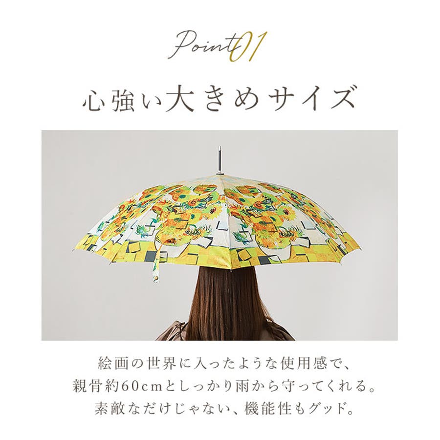 ・世界的に有名な名画を、傘生地の全面にプリント。お気に入りの作品がきっと見つかる、豊富なバリエーション。