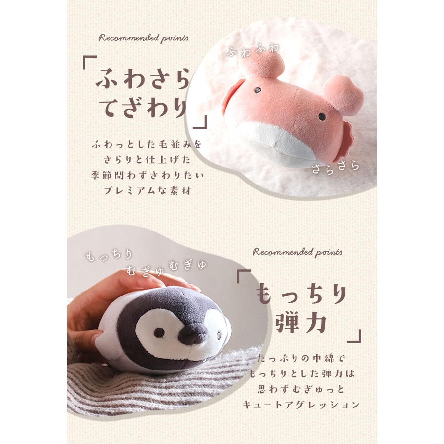 ・まぁるいフォルムでとてもキュート!ふわふわもっちり生地に包まれた、癒しモード全開のアイテム。