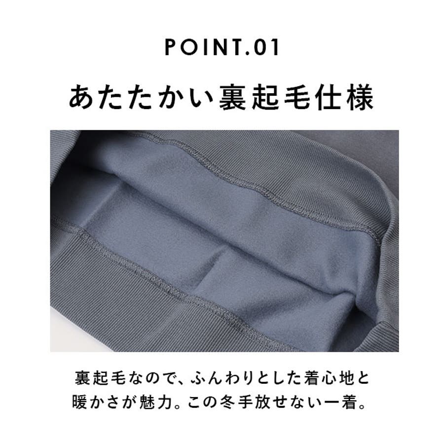 ・起毛の柔らかな肌触り。ホッとする着心地で、お出かけはもちろんリラックスタイムにも◎