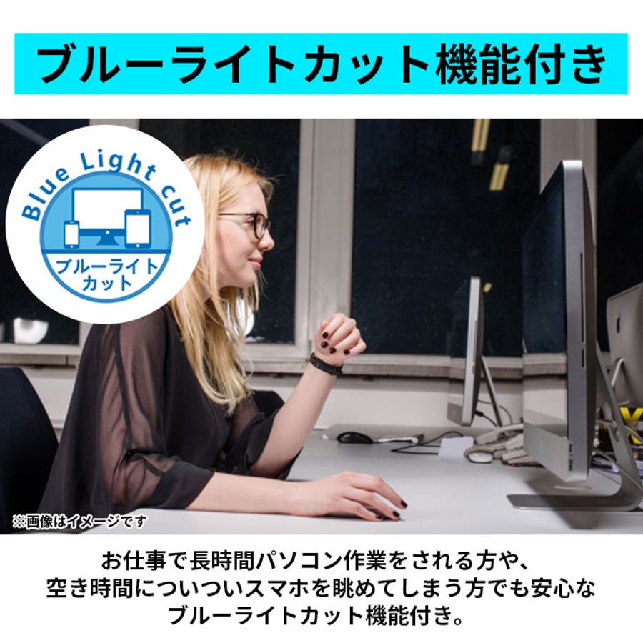 ・お仕事で長時間パソコン作業をされる方や、空き時間についついスマホを眺めてしまう方でも安心なブルーライトカット機能付き。