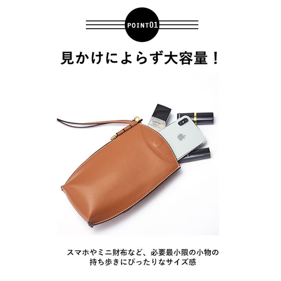 ・スマホやミニ財布など、必要最小限の小物の持ち歩きにぴったりなサイズ感。