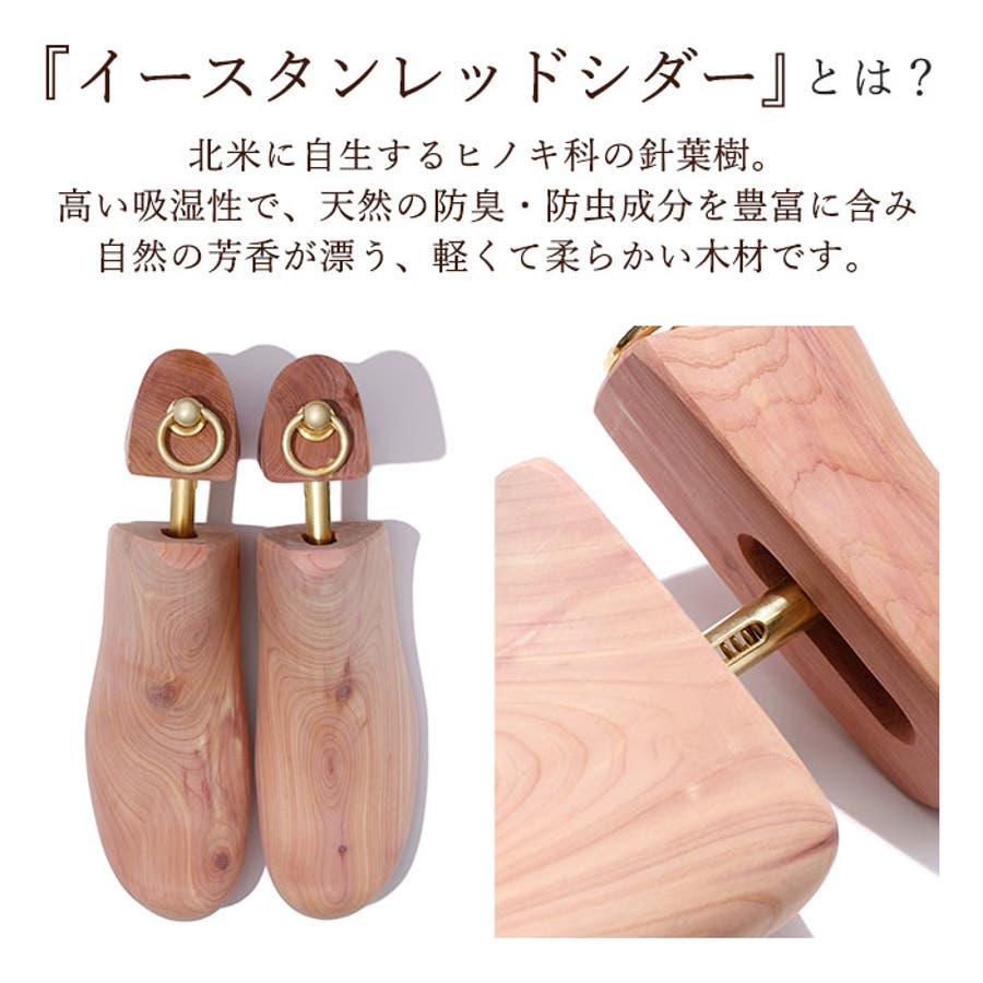 ・素材には、イースタンレッドシダーと呼ばれる北米産のヒノキ科木材を使用。殺菌効果の高いフィトンチットという成分や、天然の防臭・防虫成分を豊富に含み、お気に入りの靴をいつでも清潔にキープ。