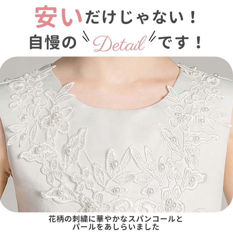・花柄の刺繍や華やかなパールをあしらった、可愛い子供用ドレス。