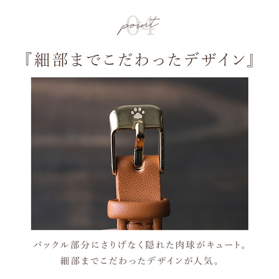 ・バックル部分にさりげなく隠れた肉球デザインがキュート。細部までこだわり満載♪