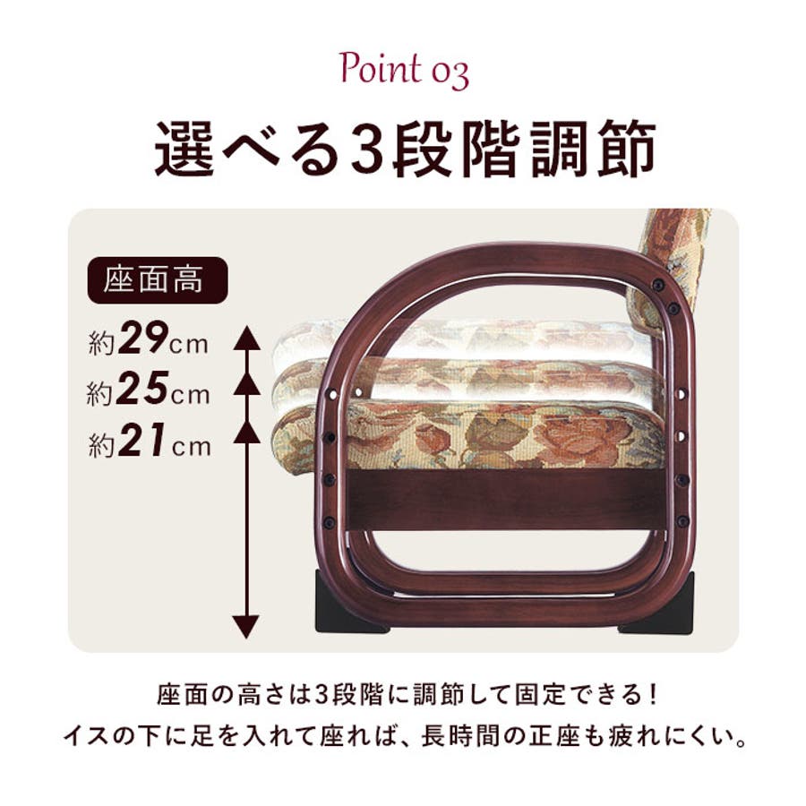 ・座面の高さは約21cm・25cm・29cmの3段階に調節して固定できる!足をイスの下に入れて座ることもできるから、長時間の正座も疲れにくい◎