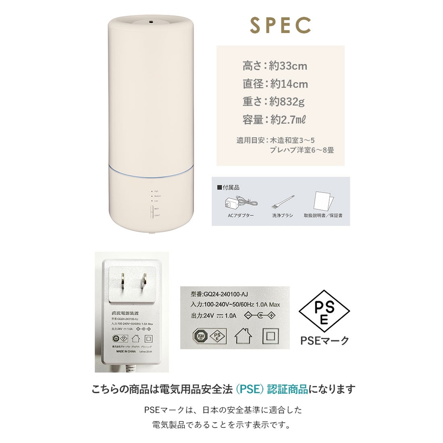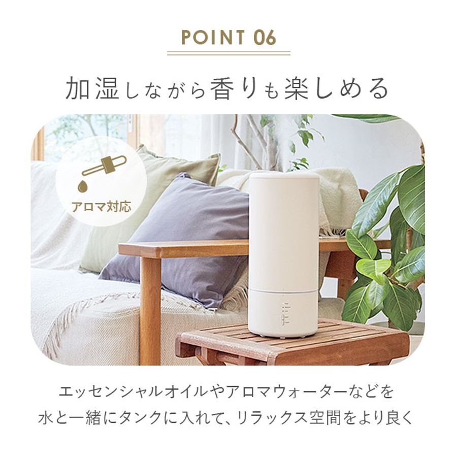 【キーワード】アロマ シンプル スリム 超音波式 上から給水 2.7L 超音波振動方式 タンク 取り外し 可能 掃除 お手入れ 簡単 リビング 寝室 ベッドサイド Beauwell ビューウェル みんなにちょうどいい加湿器 206-01 季節家電