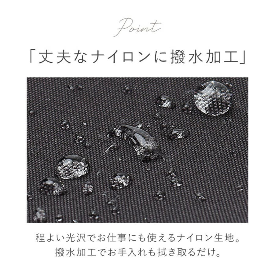 ・汚れや水滴を弾きやすい、撥水加工を施したナイロン製。お手入れも拭き取るだけ。