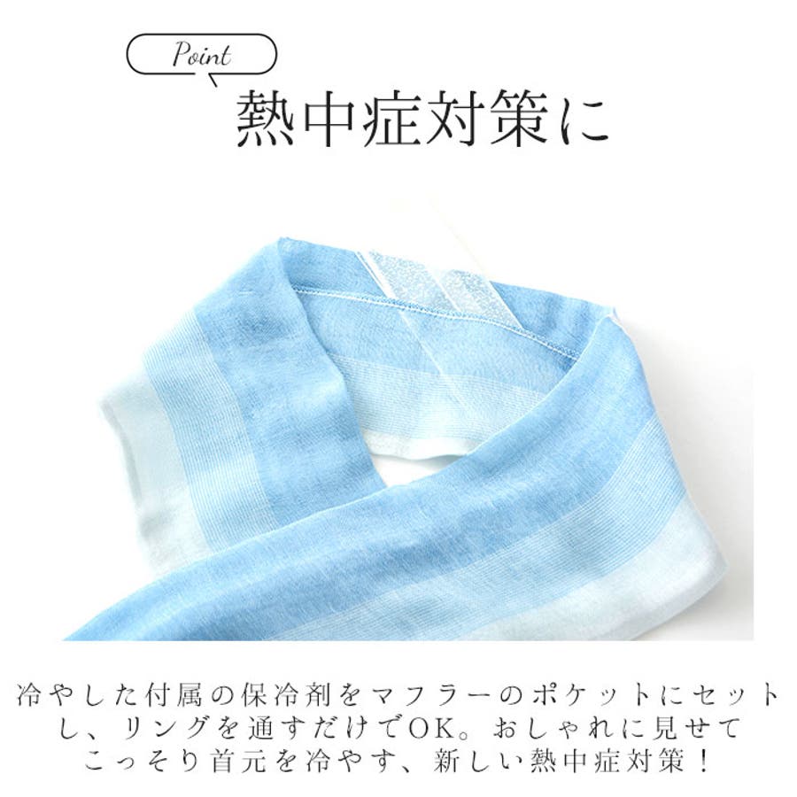 ・冷やした付属の保冷剤をマフラーのポケットにセットし、リングを通すだけでOK。おしゃれに見せてこっそり首元を冷やす、新しい熱中症対策!