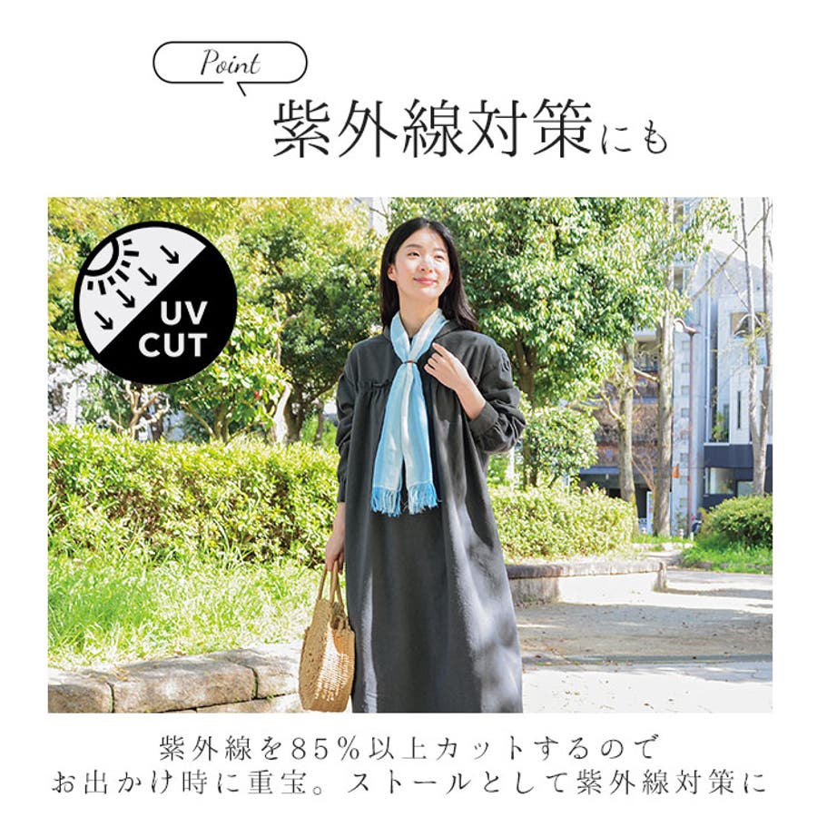 ・紫外線を85%以上カットするので、お出かけ時に重宝。ストールとして紫外線対策にも最適。
