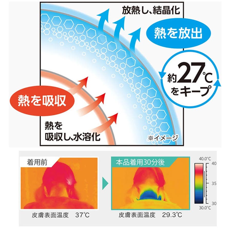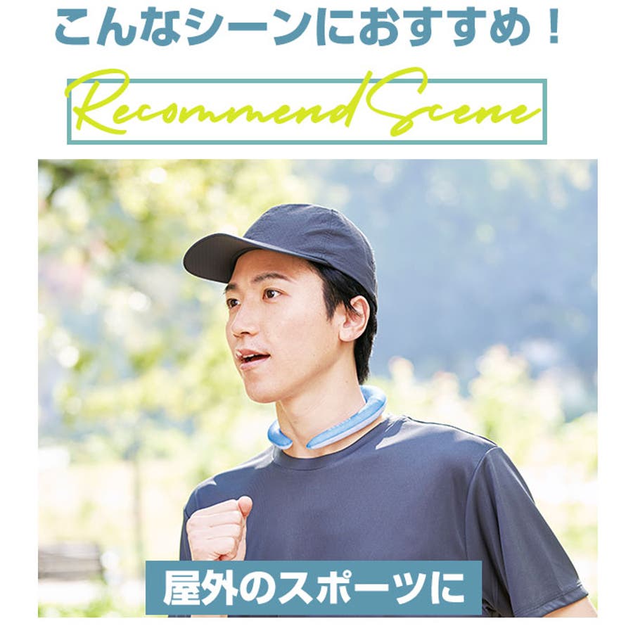 ・身体全体を冷やすには、首すじの血液を冷やすことが効果的。幅広タイプのリングを首にフィットさせるだけで、ひんやりと心地よい涼しさが持続。(※気温36度の環境下で、約27度~28度の冷たさを2時間持続。)