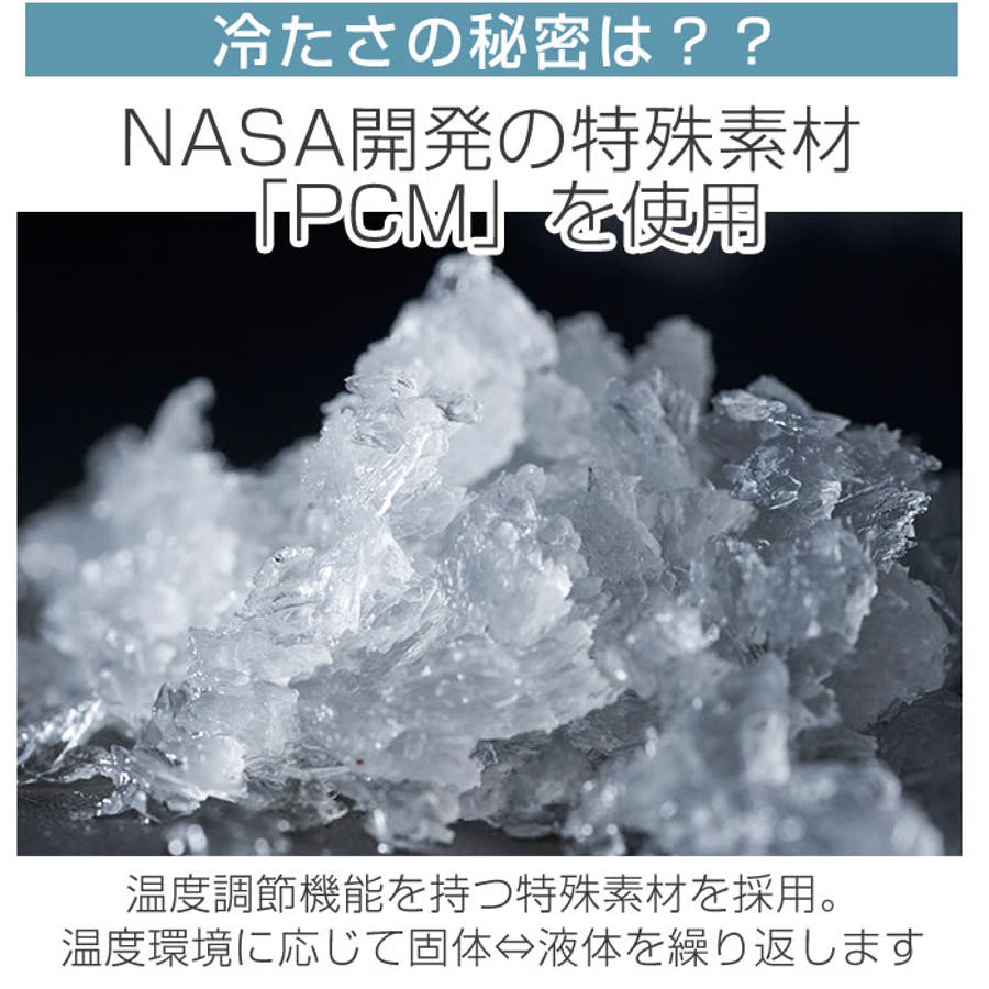 ・リングの内部には、温度調節機能を持つ特殊素材「PCM(オクタデカン)」を充填。28度以下で自然凍結し、約27度を長時間キープする驚きの次世代素材!