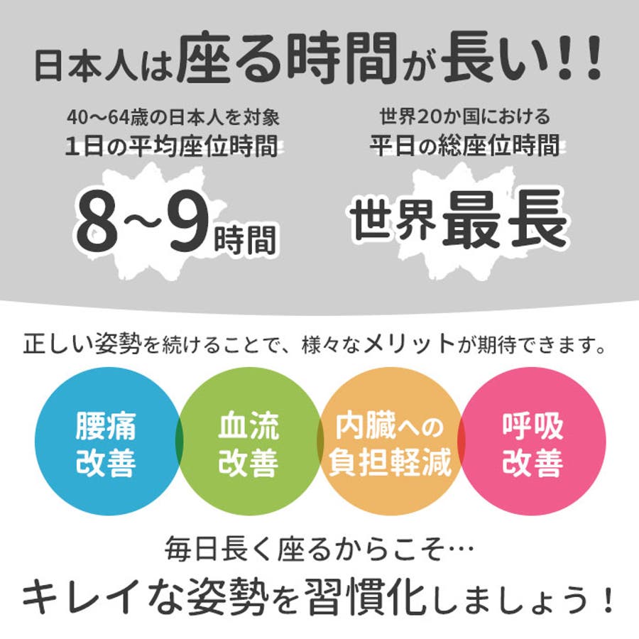 ・座面に体重がかかると、背当て部分が前方に。座ることで自然と骨盤が起こされるボード型。