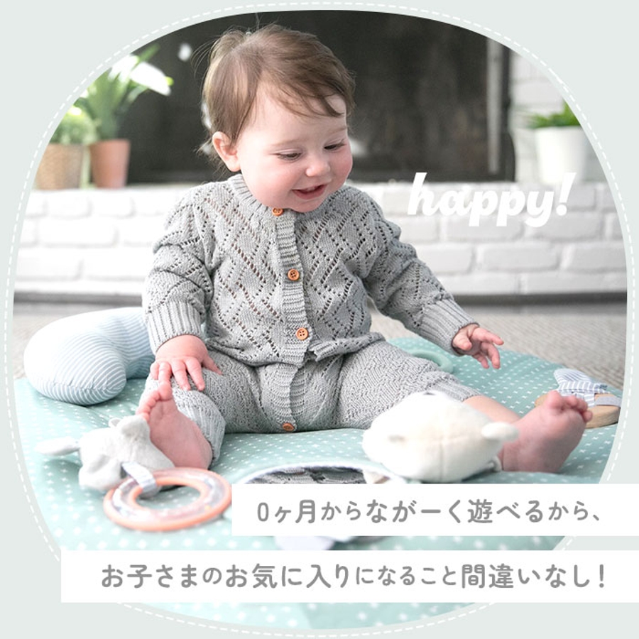 ・プレイマット、マットカバー、トイバー、クッション、くまの布製おもちゃ、ぞうのラトル、フルーツ型おもちゃ、木製リング、かがみ