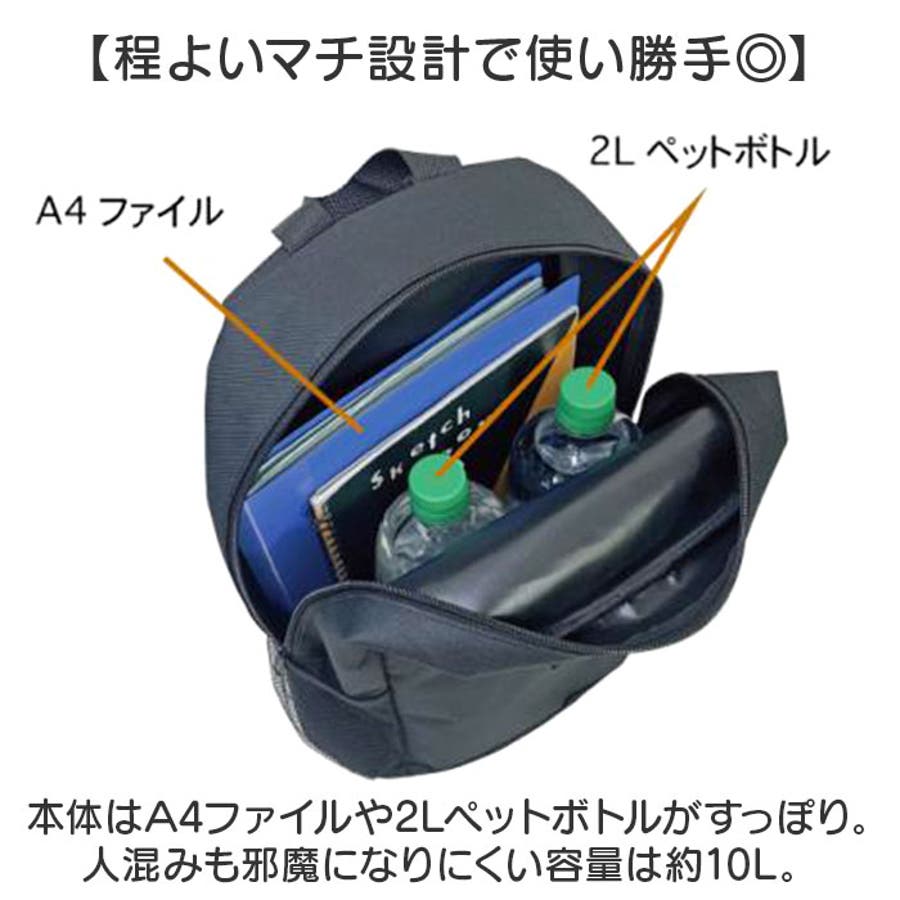 ・本体はA4ファイルや2Lペットボトルがすっぽり。人混みも邪魔になりにくい容量は約10L。