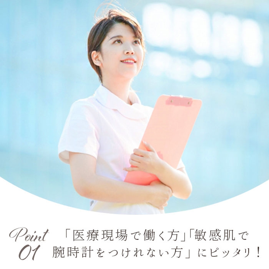 ・医療現場で働く方や腕時計をつけられないお仕事の方、腕時計の金属部分が肌に直接触れるのが心配・・・という敏感肌の方にもピッタリ。