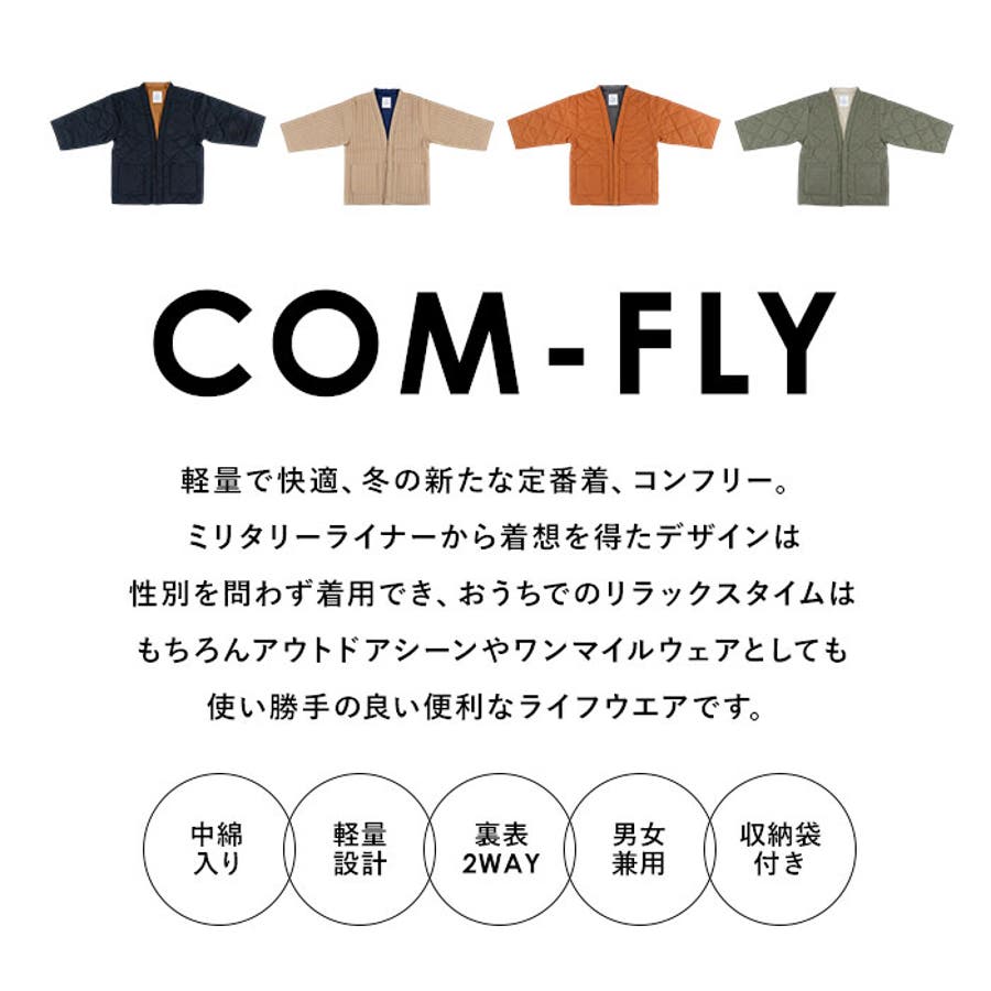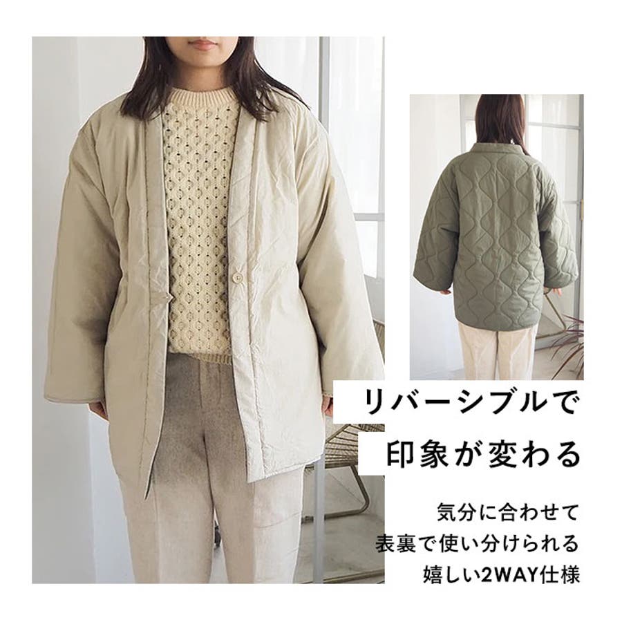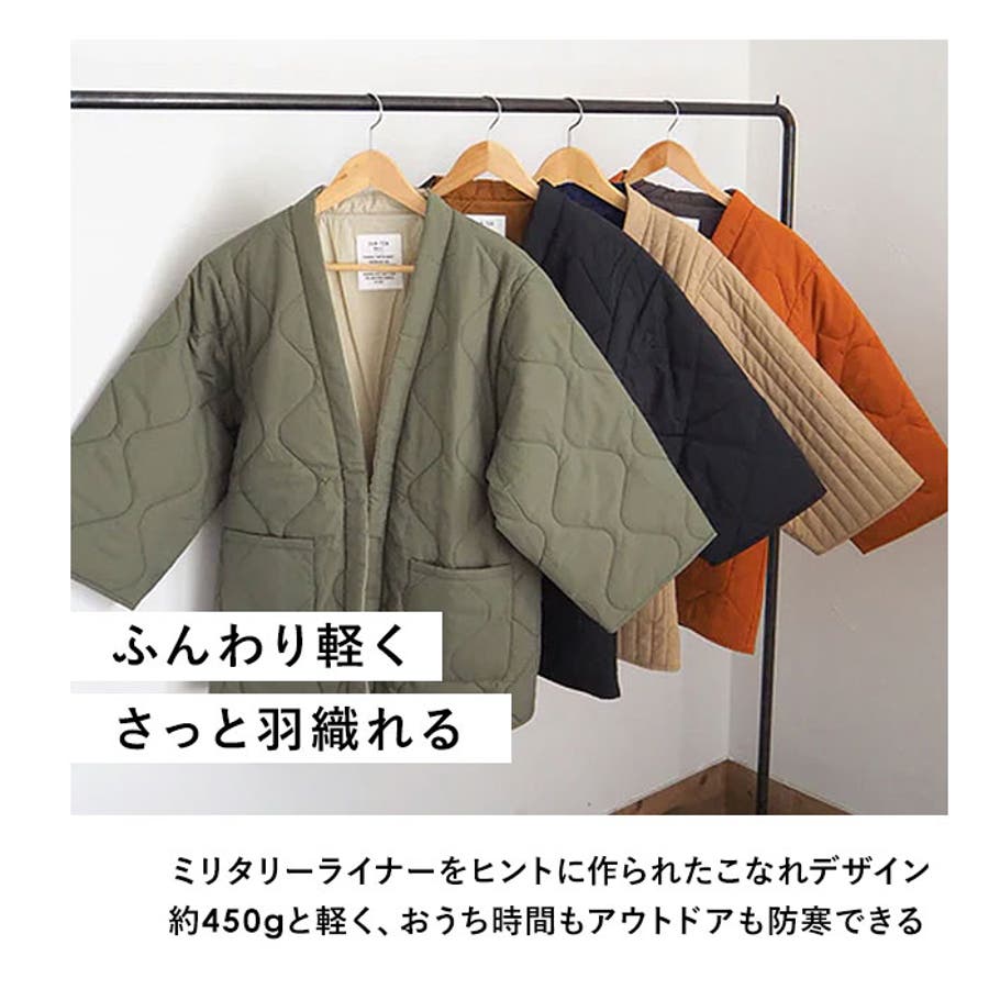 ・ミリタリーライナーをヒントに、作られたデザイン。中綿入りで、サッと羽織れば手軽に防寒◎
