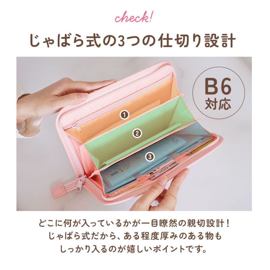 ・内側3スペースのジャバラ式オープンポケットは、Mサイズ(B6判)の母子手帳が収納可能なサイズ。