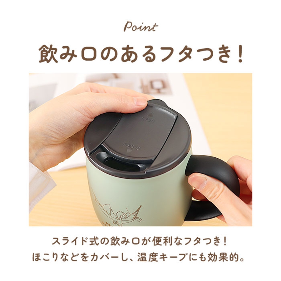 ・開閉スムーズなスライド式の飲み口付き。フタをしたまま飲めるのが嬉しい!
