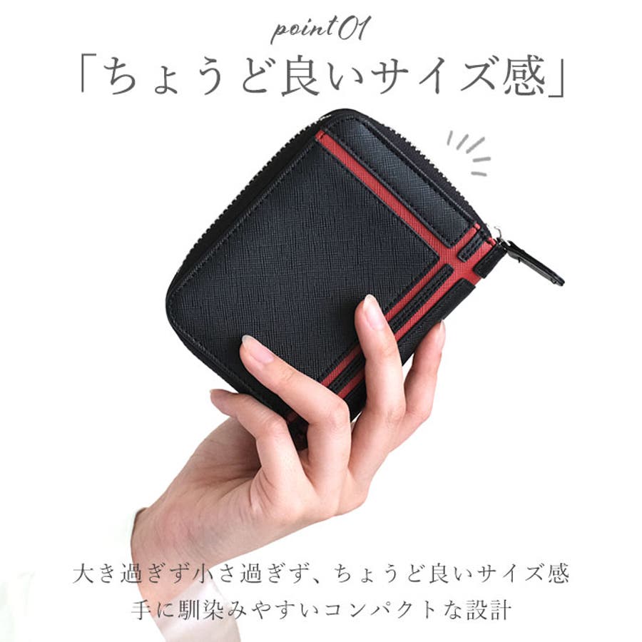 ・ラウンドファスナー式の小銭ポケットは大きく開くから中身が見やすくて使い勝手抜群♪