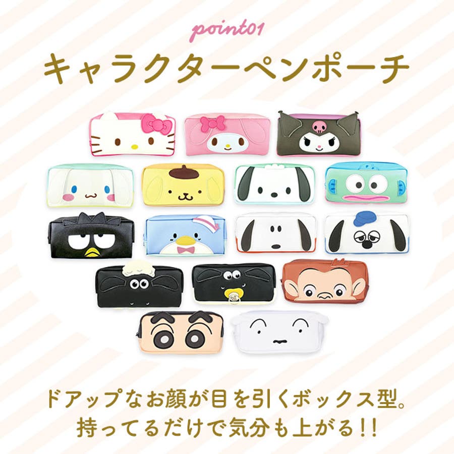 ハローキティ,マイメロディ,クロミ,シナモロール,ポムポムプリン,ポチャッコ,ハンギョドン,バッドばつ丸,タキシードサム,オラフ,スヌーピー,ひつじのショーン,ひつじのショーン/ティミー,おさるのジョージ,しんちゃん,シロ
