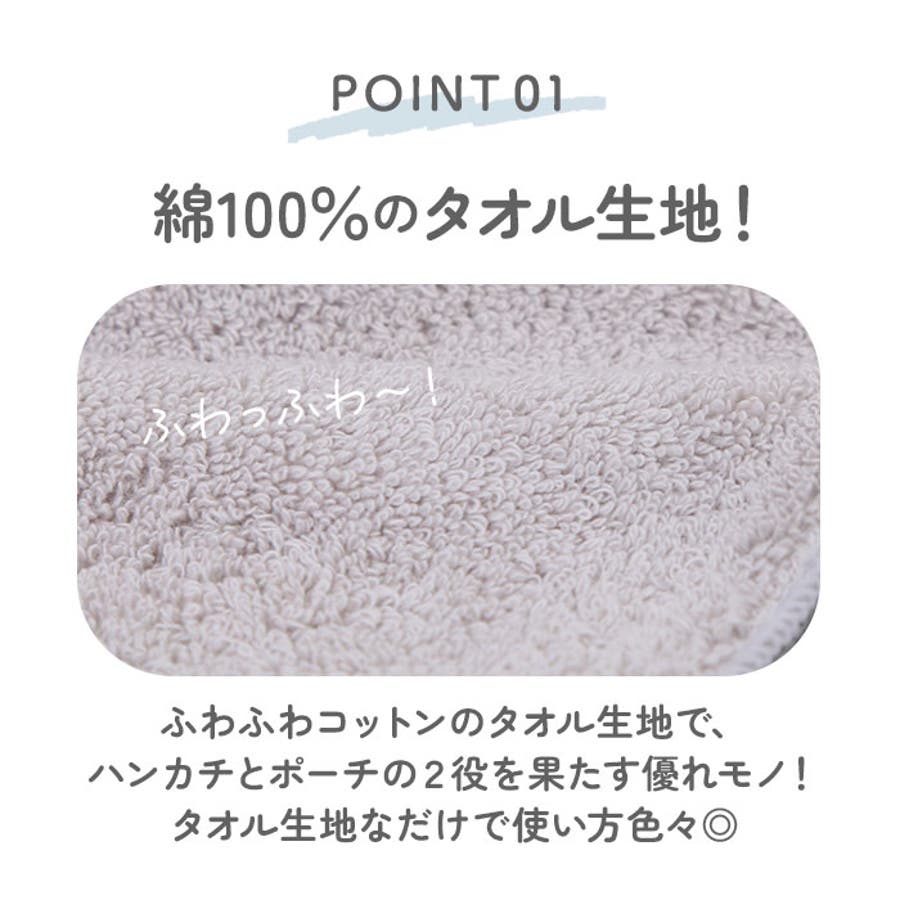 ・パッと見はふわふわコットンのタオルハンカチ、ファスナーを広げると便利なミニポーチに変身!どっとポーチは、ミニタオルにファスナーをプラスしたありそうでなかったポーチ。