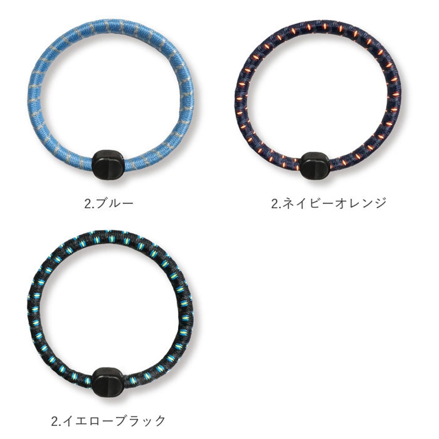 ・伸縮性の高い落ち着いたカラーのゴムに、明るい色彩の糸を緻密に編み込んだユニセックスデザイン。
