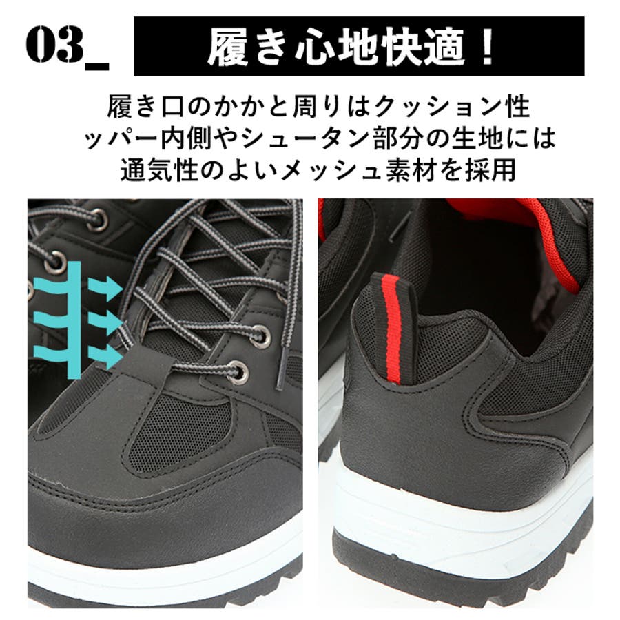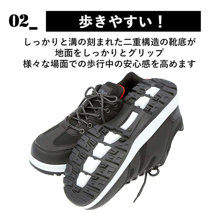 ・足裏への衝撃を効果的に吸収する3.5cm厚のボリューミーなアウトソールが注目ポイント。作業用のワーキングシューズとしてもオススメ。