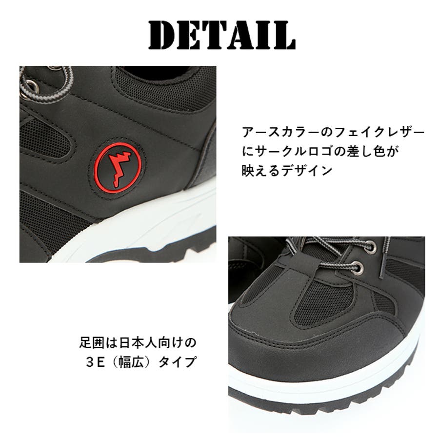 ・アースカラーのフェイクレザーにサークルロゴの差し色が映えるスタイリッシュな外観で、地味になりがちな従来のトレッキングシューズのイメージを一新!