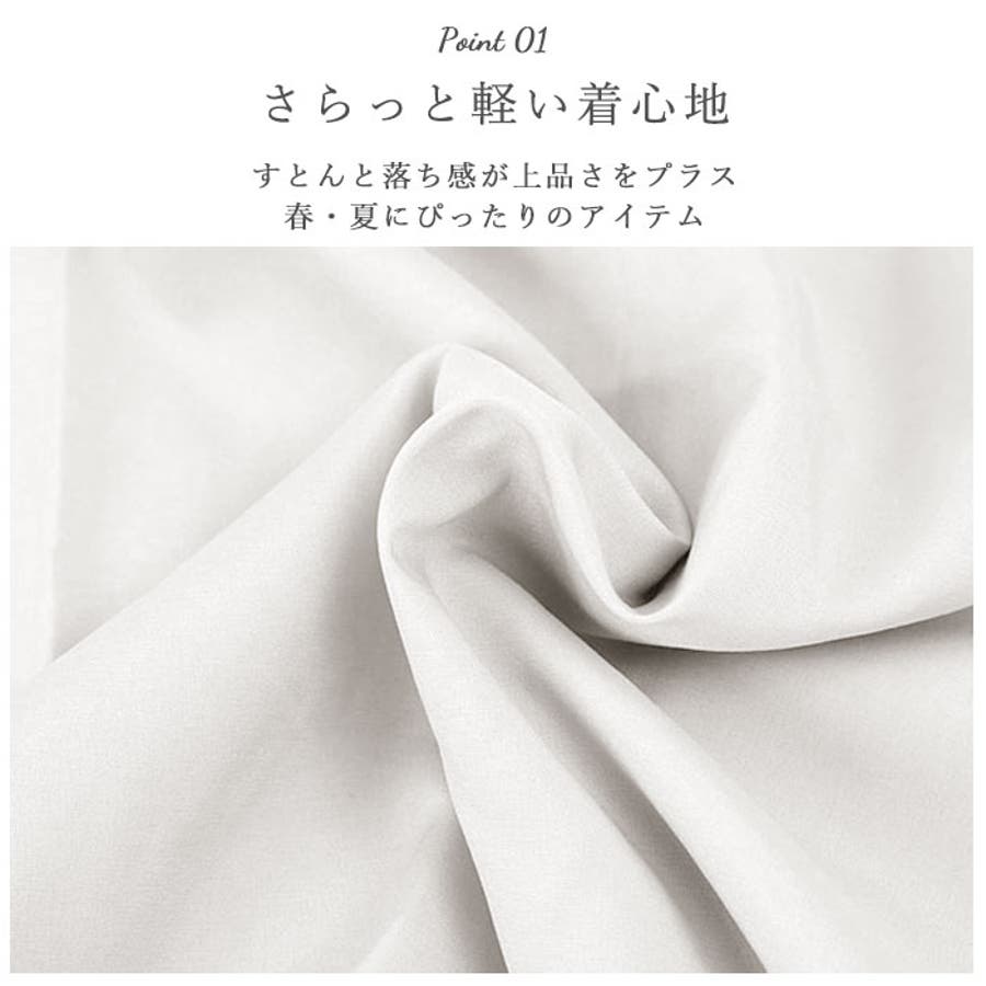 ・胸元のリボン生地を軽くひと結びにしたりそのままふんわりと流すことで、柔らかな清潔感を演出。ボウタイスタイルにすればよりすっきりとフォーマルに着こなせる。
