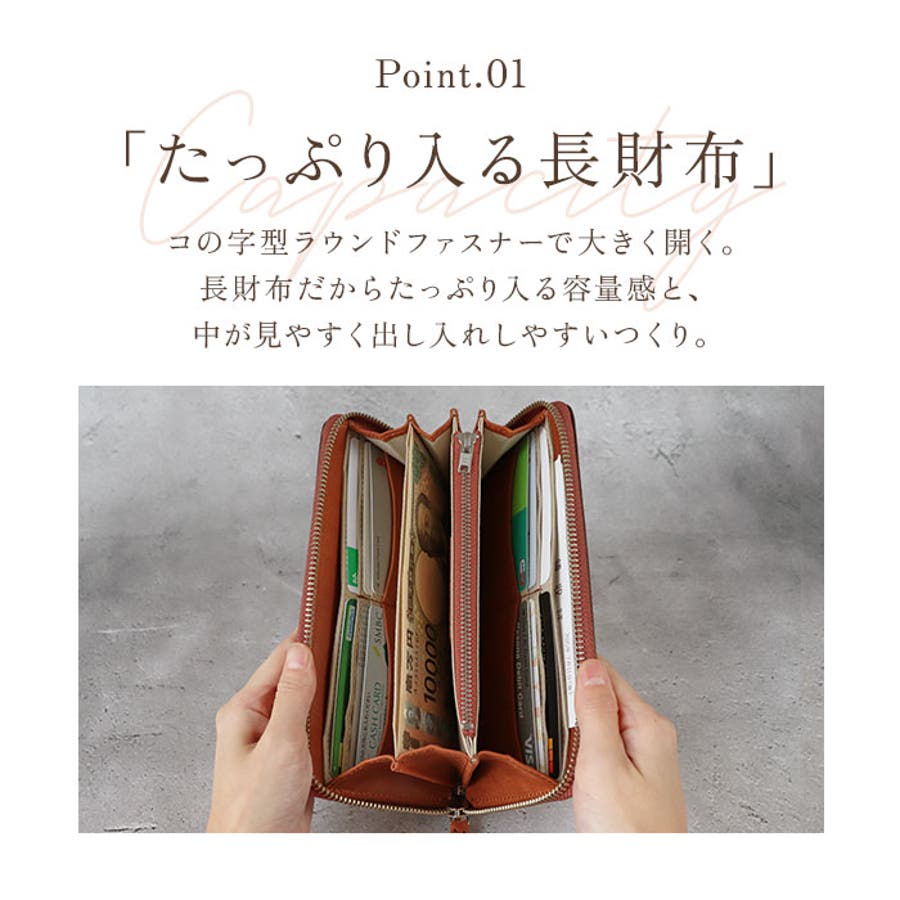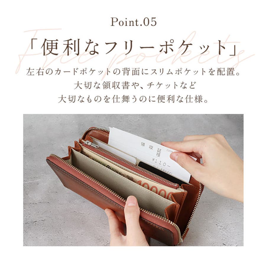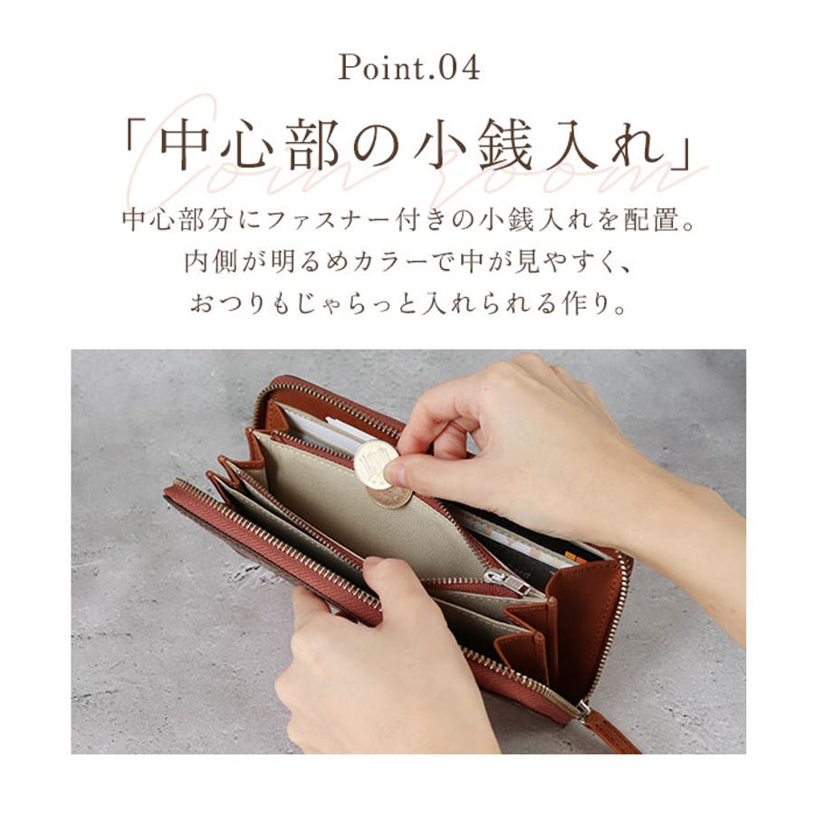 ・ファスナー付きの小銭入れ、仕切り付きの札入れ、カードポケットやフリーポケットもあり収納力抜群!