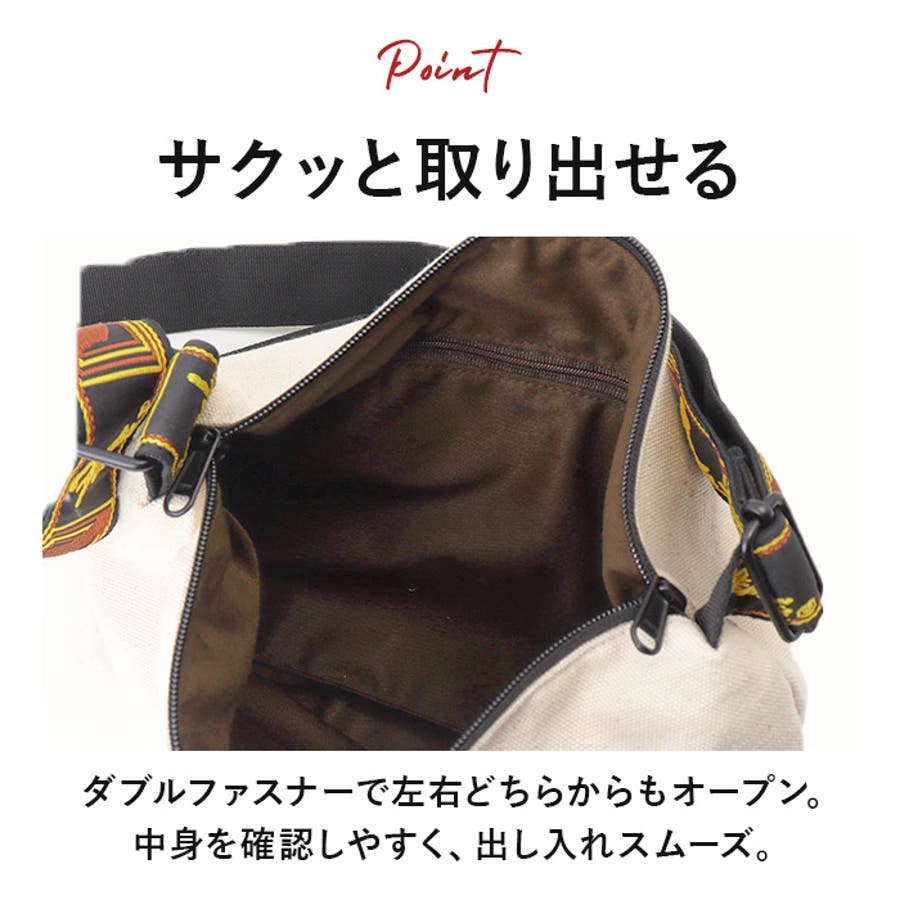 ・普段使いにちょうどいい、丈夫でナチュラル感のあるキャンバス地。手軽に使えるショルダー。