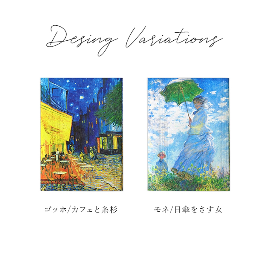 [種類] | ゴッホ/カフェと糸杉 / モネ/日傘をさす女 / 鳥獣戯画と霞 / コーヒーブレイク / ミモザ |