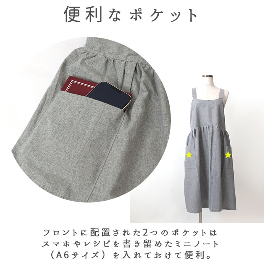 【キーワード】前掛け 前掛 ふんわり ワンピース 柔らかい やわらかい コットン ユニセックス 綿 かわいい キッチン 家事 料理 お稽古 習い事