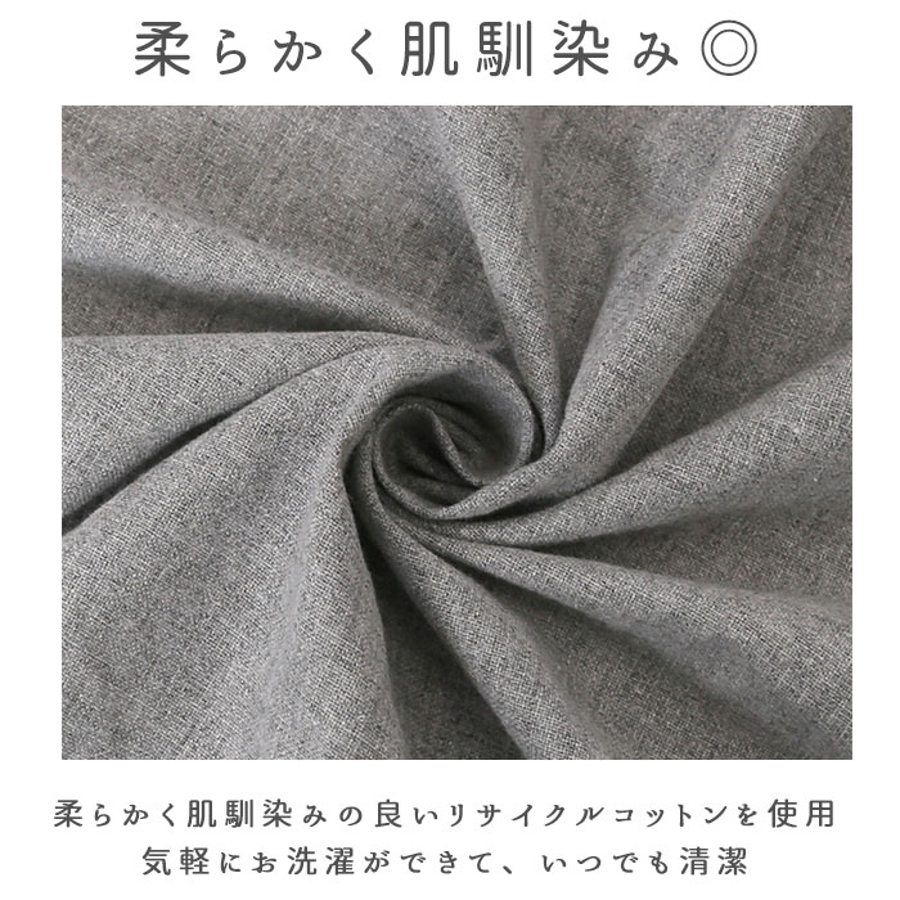 ・柔らかく肌馴染みの良いリサイクルコットンを使用。気軽にお洗濯ができて、いつでも清潔。