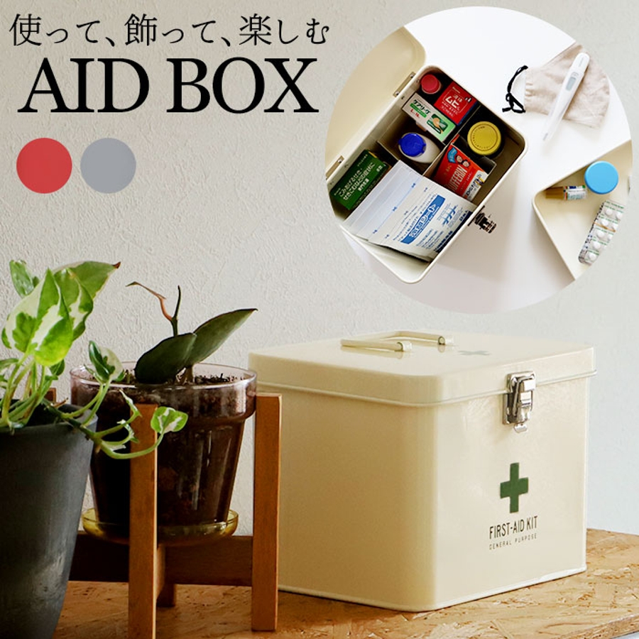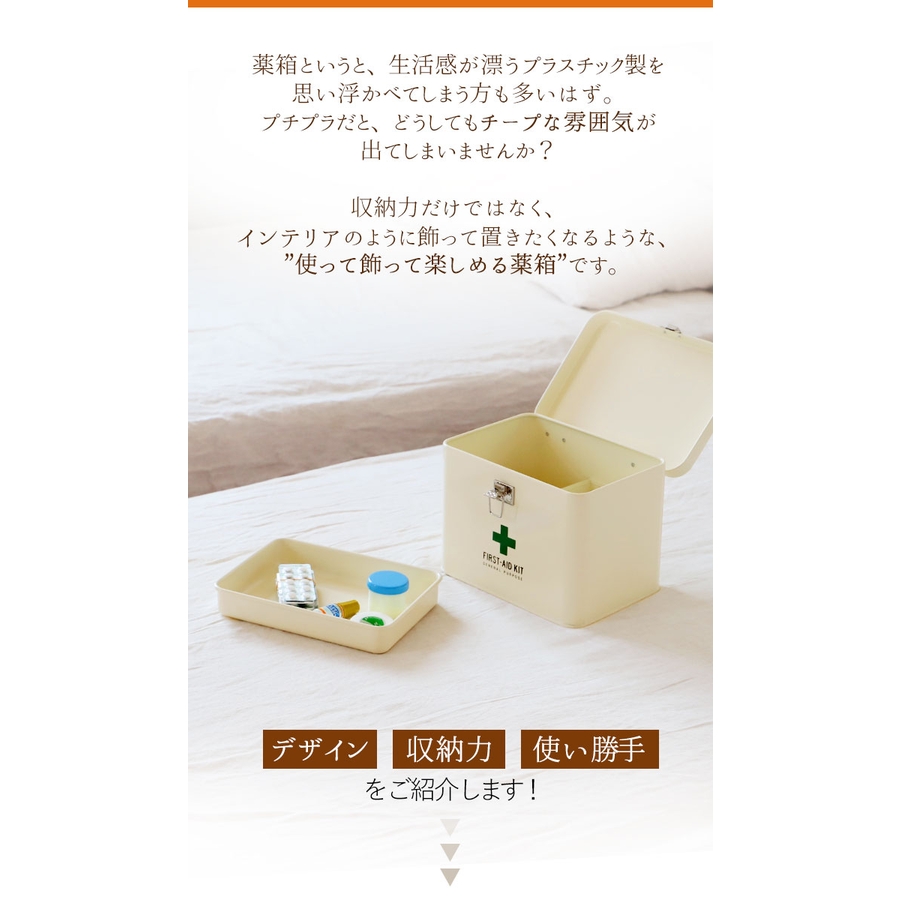 【キーワード】 救急箱 おしゃれ 通販 大 スチール 収納ケース 収納ボックス フタ付き 蓋つき 蓋付き 内皿付き 仕切り付き 大容量ファミリーサイズ かわいい 道具箱 薬箱 防災グッズ 応急処置 応急手当 メディコ ファーストエイドボックス Mサイズ
