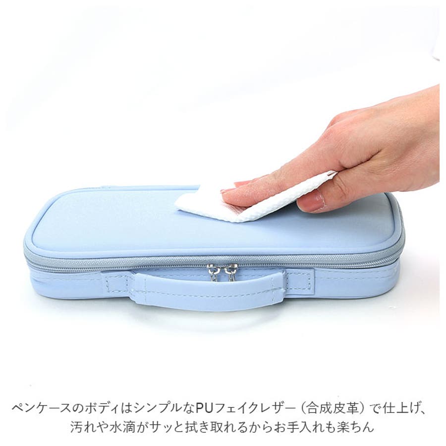 ・ペンケースのボディはシンプルなPUフェイクレザー(合成皮革)で仕上げ、汚れや水滴がサッと拭き取れるからお手入れも楽ちん。