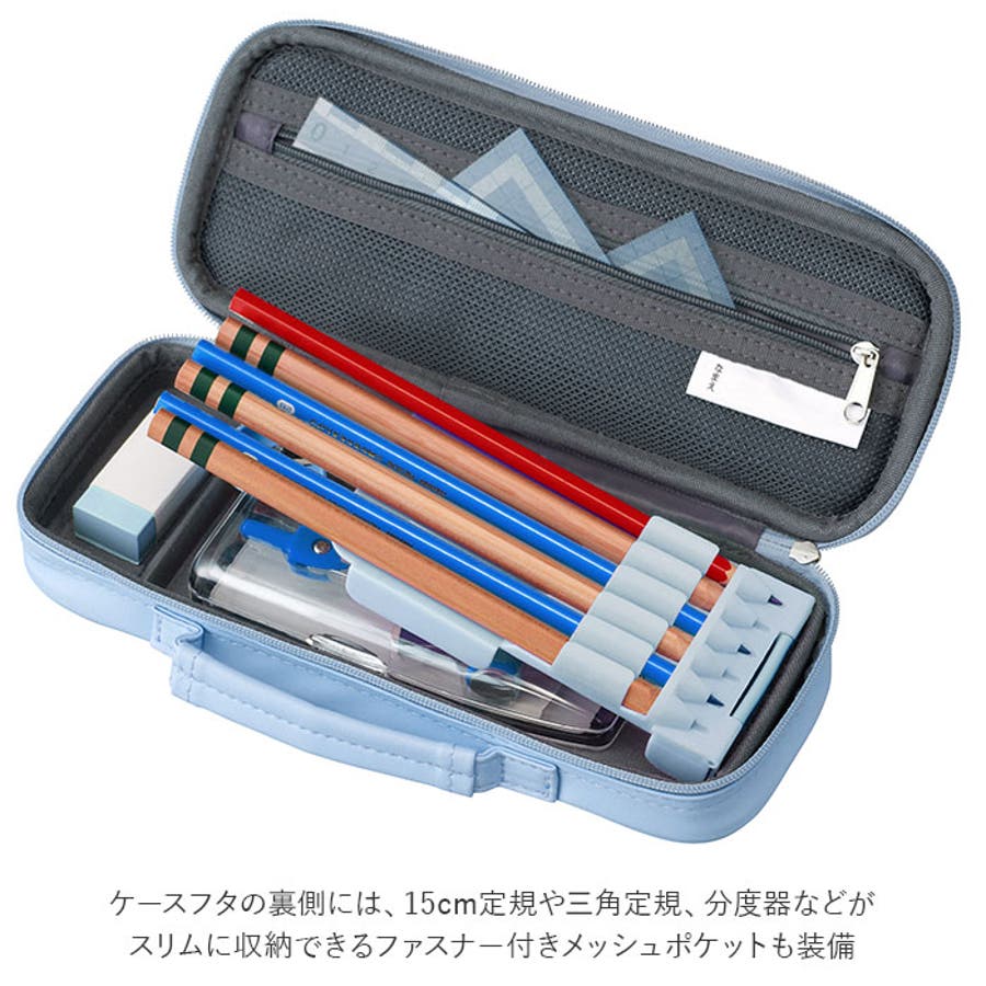 【キーワード】コンパクト 合皮 軽量 筆入れ 筆入 筆箱 収納力 ペンホルダー 文具 丈夫 レイメイ藤井 コンパス 三角定規 分度器 ネイビー ブラック バイオレット ライトブルー 学校 家庭 通学