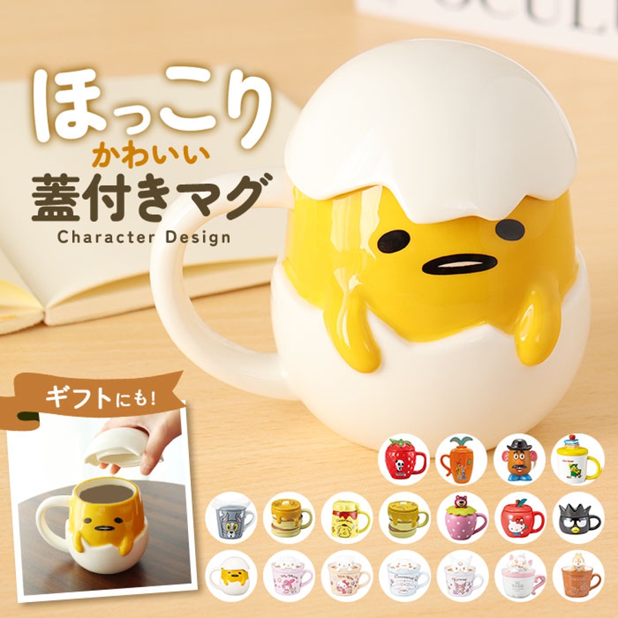 ・リラックスタイムに嬉しいフタ付き。愛らしいキャラクターデザインのマグカップ♪