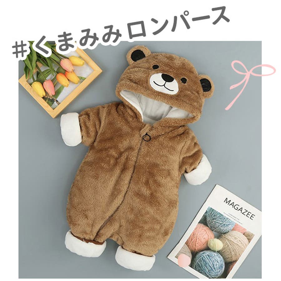 【キーワード】長袖 防寒 男の子 女の子 ベビー服 かわいい アニマル 動物 クマ くまさん 着ぐるみ 冬 73 70 80 90 ベビー キッズ ロンパース