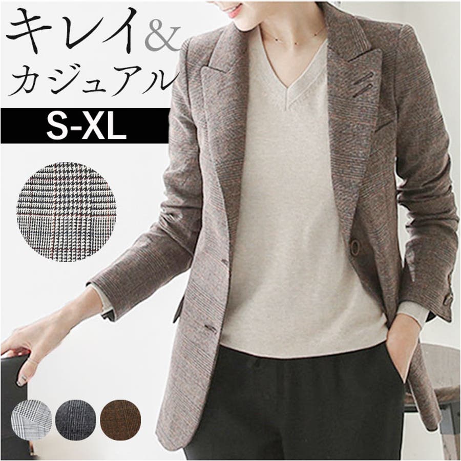 【キーワード】テーラード ジャケット チェック ミドル丈 羽織もの 冬 秋冬 カジュアル オフィス 通勤 ビジネス 面接 就活 ライトアウター オシャレ かわいい おしゃれ きれいめ きちんと アウター レディースファッション
